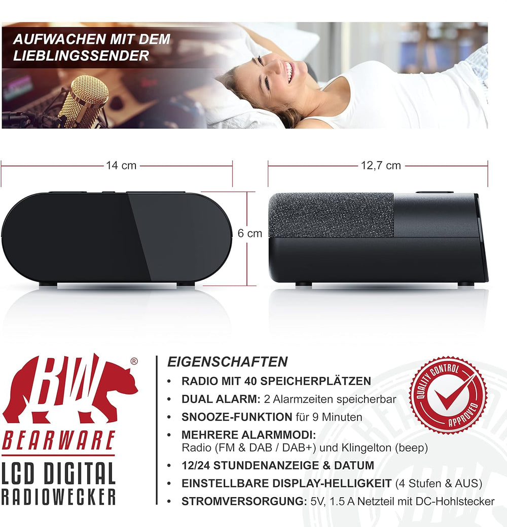 CSL - DAB+ Radiowecker DAB, UKW, Uhrenradio, Wecker mit Zwei einstellbaren Weckzeiten, Snooze-Funkti