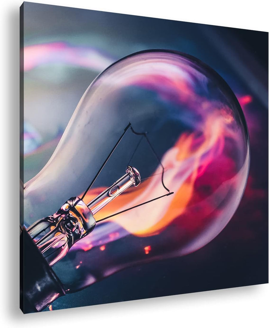 brennende Glühbirne Format: 70x70 als Leinwandbild, Motiv fertig gerahmt auf Echtholzrahmen, Hochwer