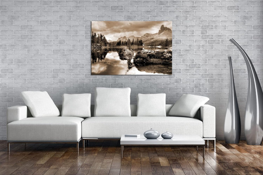 beginnender Winter in den Dolomiten Effekt: Sepia, Format: 80x60 als Leinwandbild, Motiv fertig gera