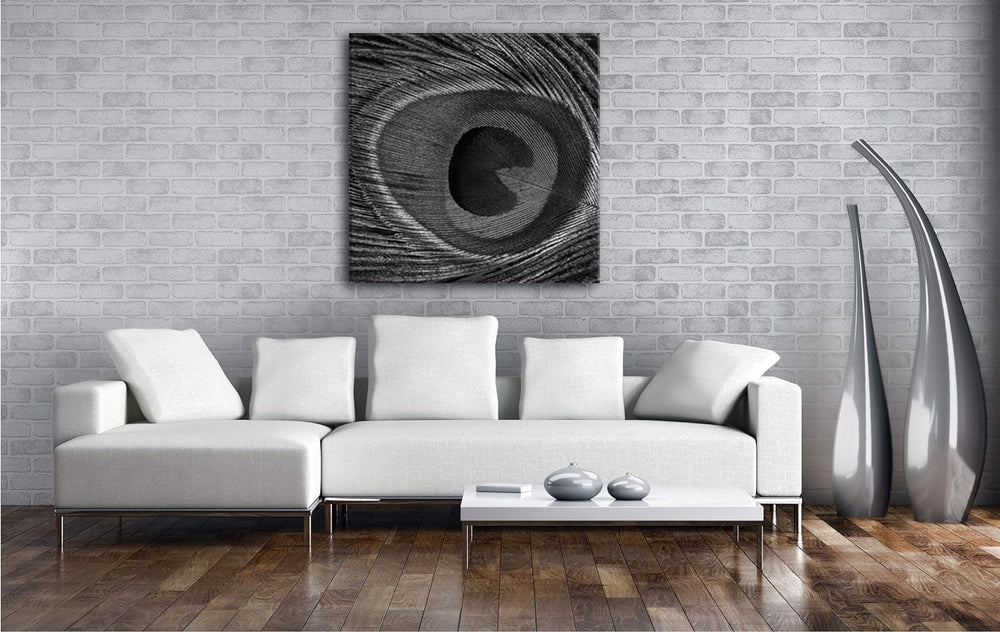 bezaubernde Pfauenfeder mit Muster im Format: 70x70 Effekt: Schwarz&Weiss als Leinwandbild, Motiv fe