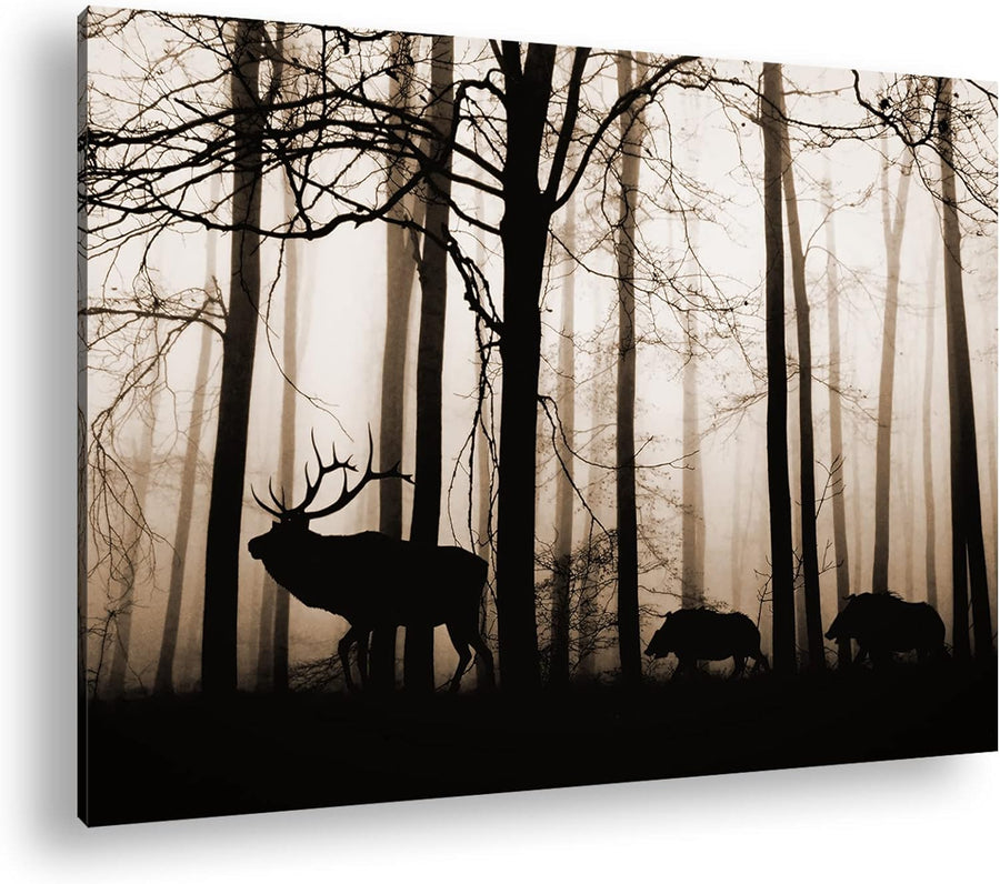 Bewohner des Waldes Format: 80x60 als Leinwand, Effekt: Sepia, Motiv fertig gerahmt auf Echtholzrahm