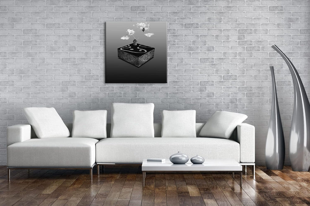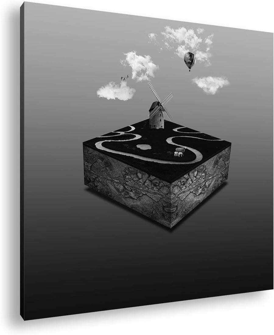 Block Windmühle Format: 70x70 Effekt: Schwarz&Weiss als Leinwandbild, Motiv fertig gerahmt auf Echth