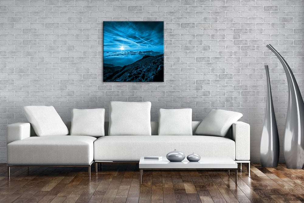 berührende Berglandschaft über den Wolken Format: 70x70 Effekt: Monocrome Blau als Leinwandbild, Mot