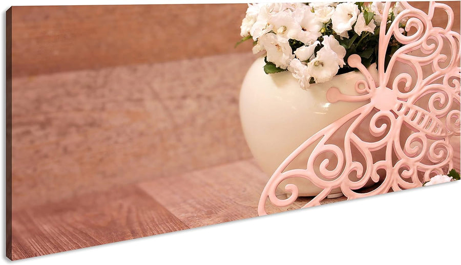Blumen und Schmetterlinge Panorama 60x30 cm als Leinwandbild, Motiv fertig gerahmt auf Echtholzrahme
