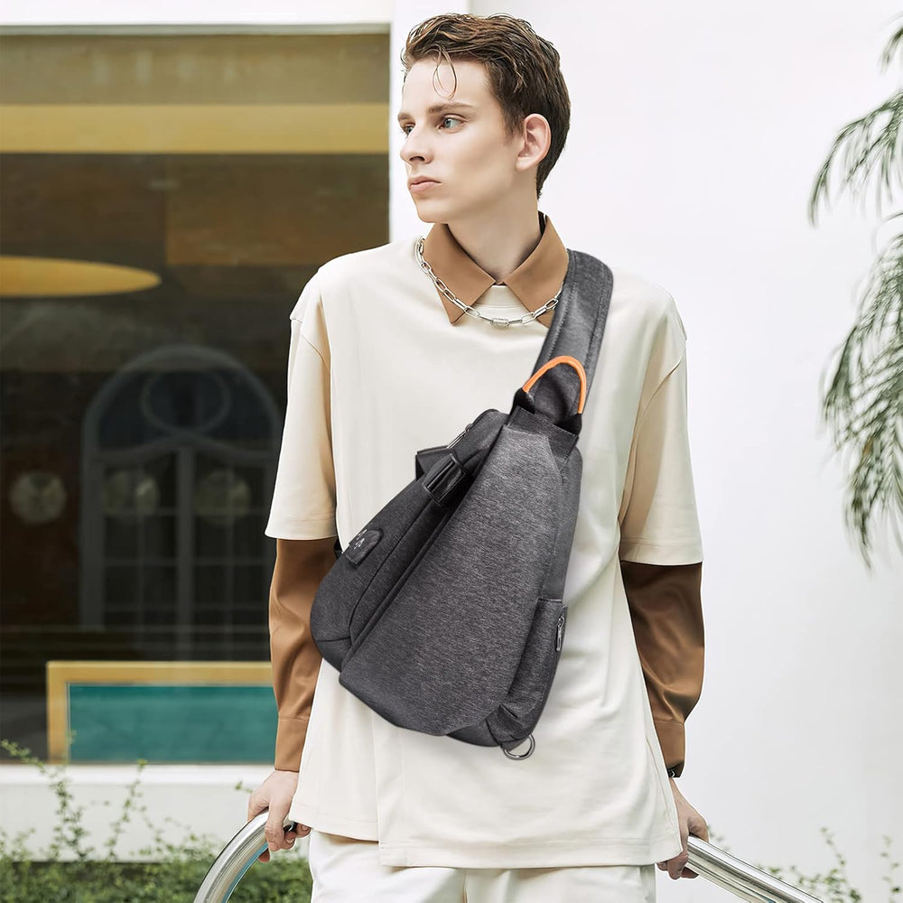 DORRISO Mode Herren Brusttasche Elegant Umhängetasche USB-Anschlussdesign Reise Schultertasche Casua