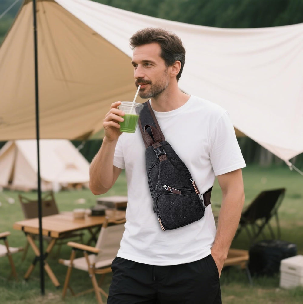 DORRISO Mode Herren Brusttasche Elegant Umhängetasche Reise Schultertasche Leichte Casual Urlaub Wan