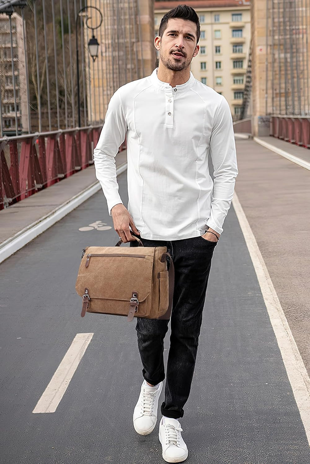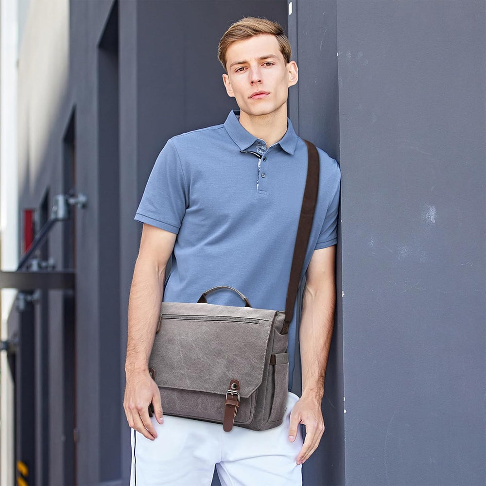 DORRISO Herren Umhängetasche Mode Schultertasche Leinwand Schultertaschen für 13.3 Zoll Laptop Kurie
