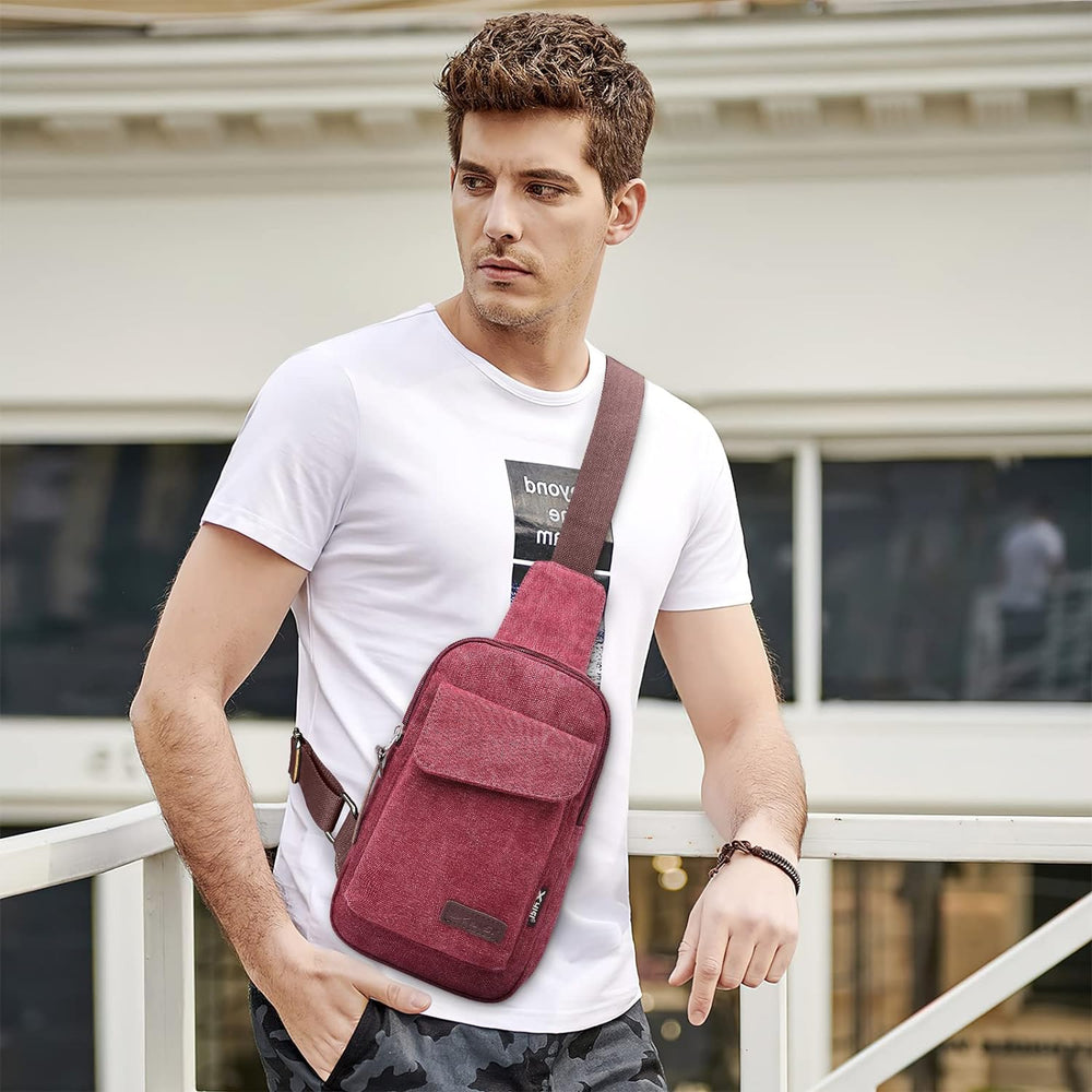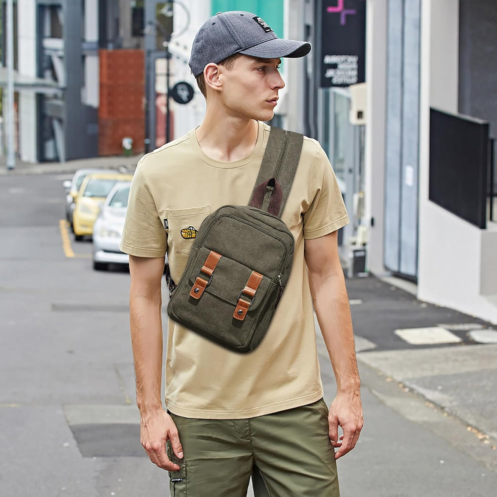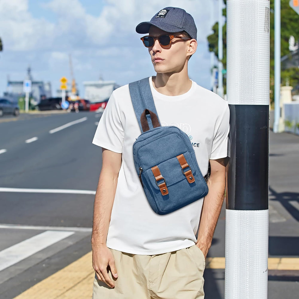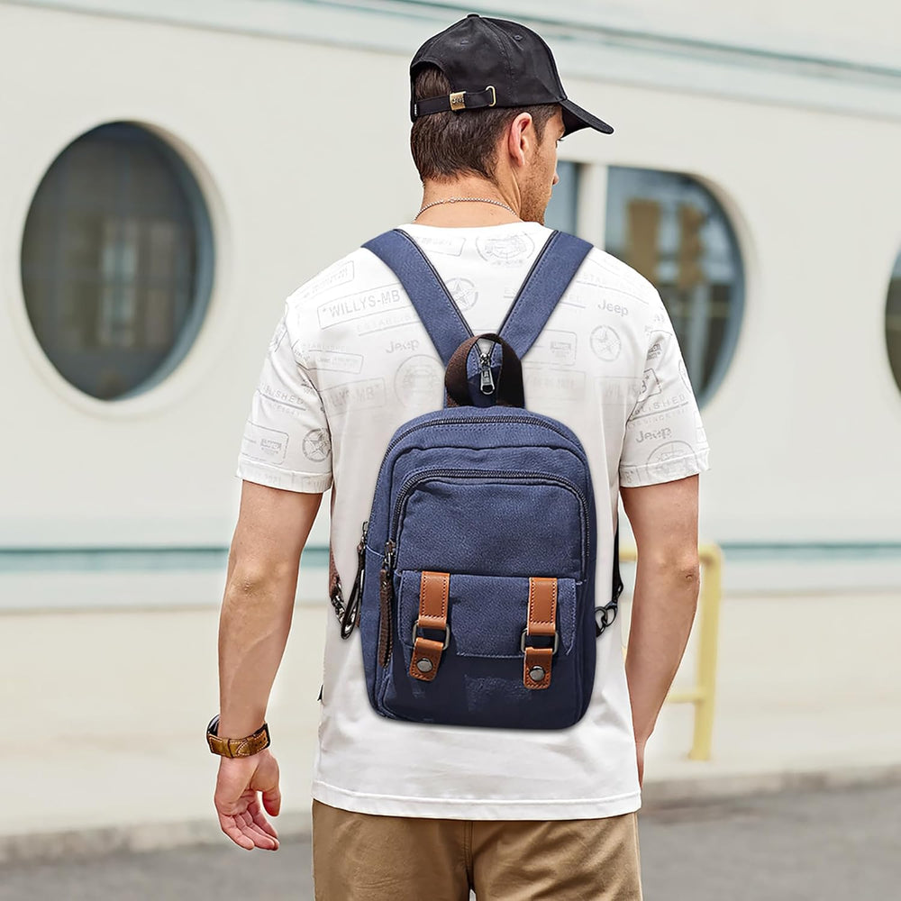 DORRISO Herren Rucksack Damen Klein Tagesrucksäcke Mode Brusttasche Sling Bag Leinwand Schultertasch