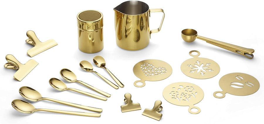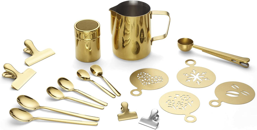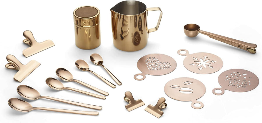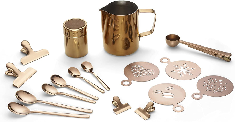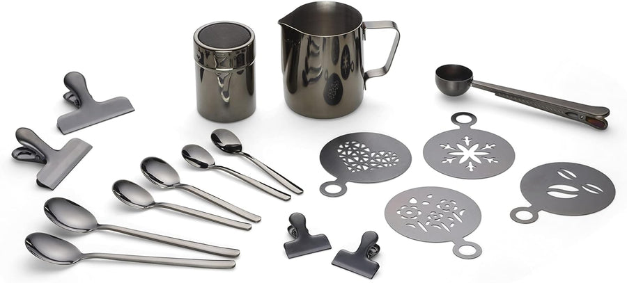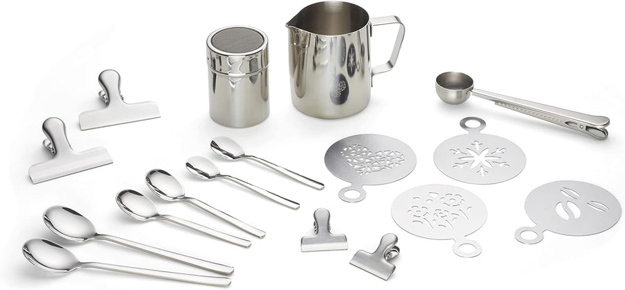 ECHTWERK Kaffeezubehör-Set, 23-tlg, 600 ml, 4x Espresso-, 4x Cappuccino-, 4x Latte 4x Kaffeeclips, 4