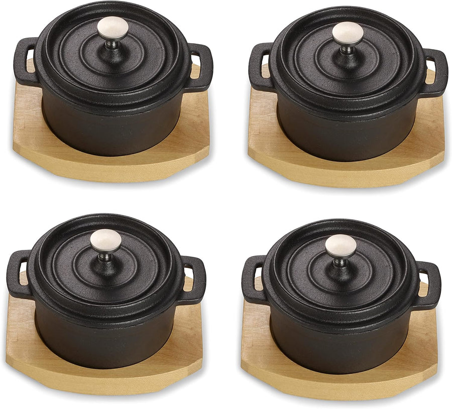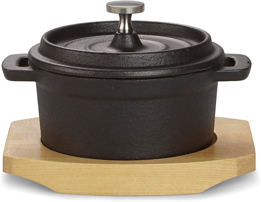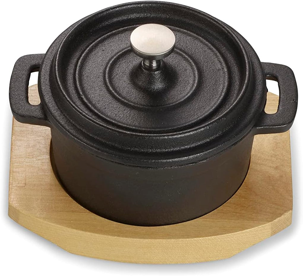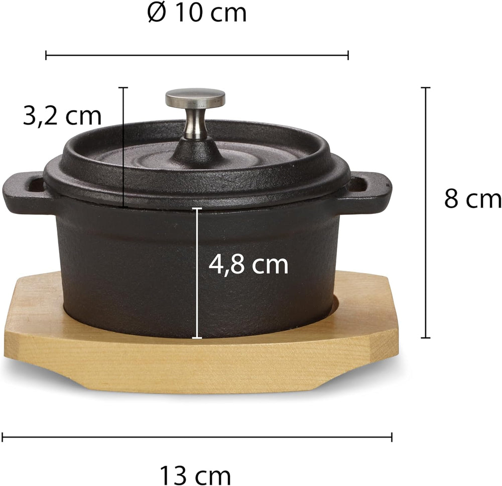 ECHTWERK Kochtopf Set aus Gusseisen, Mini-Kochtopf mit Servierbrett, Kleiner Bräter, Bereits eingebr