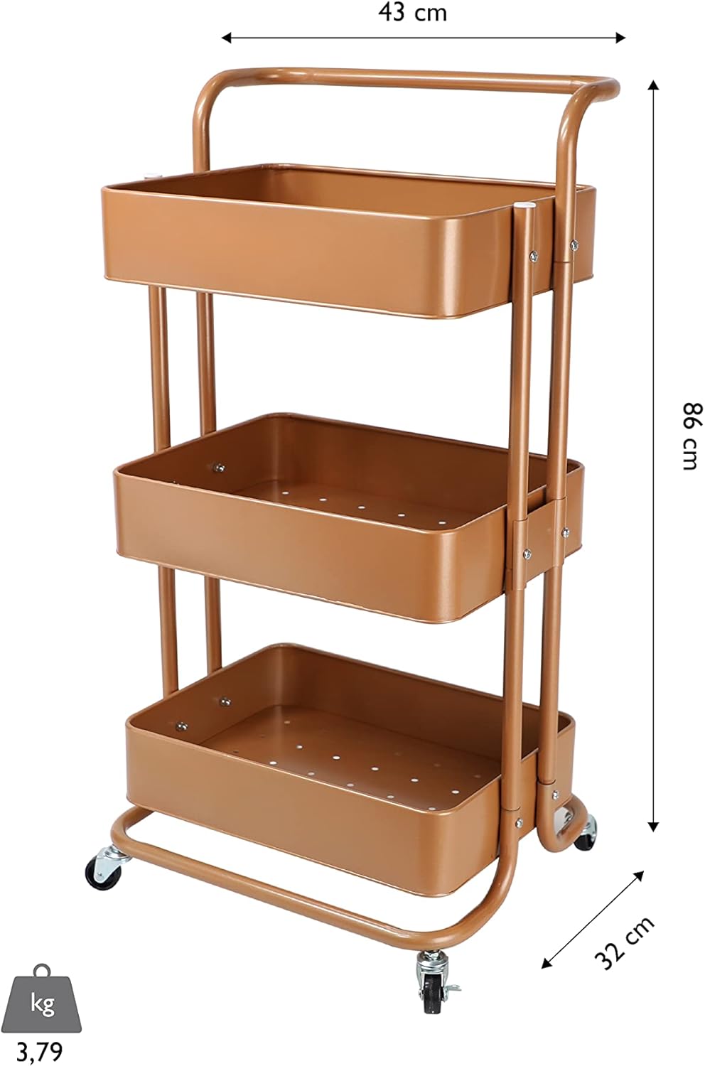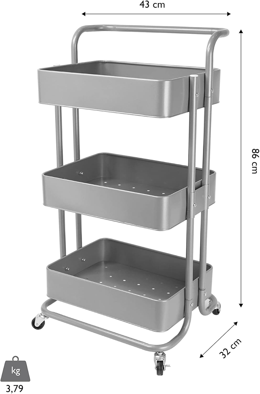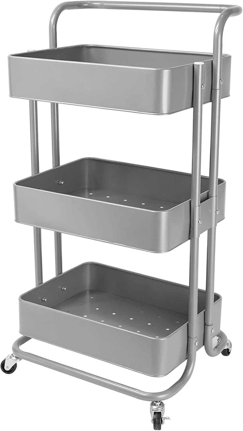 Echtwerk mobiler Servierwagen für Küche/ Bad/ Büro mit 3 Ebenen, Küchenrollwagen, Küchenwagen, Werkz