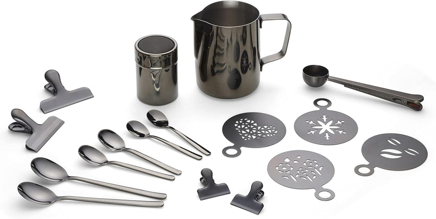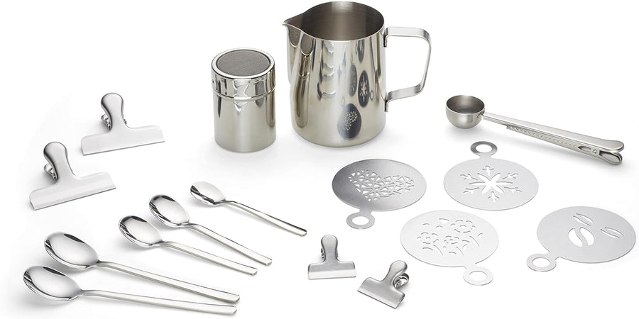 Echtwerk Kaffeezubehör-Set, 23-tlg, Milchschaumkännchen 350 ml, Kakaostreuer, 4x Espresso-, 4x Cappu