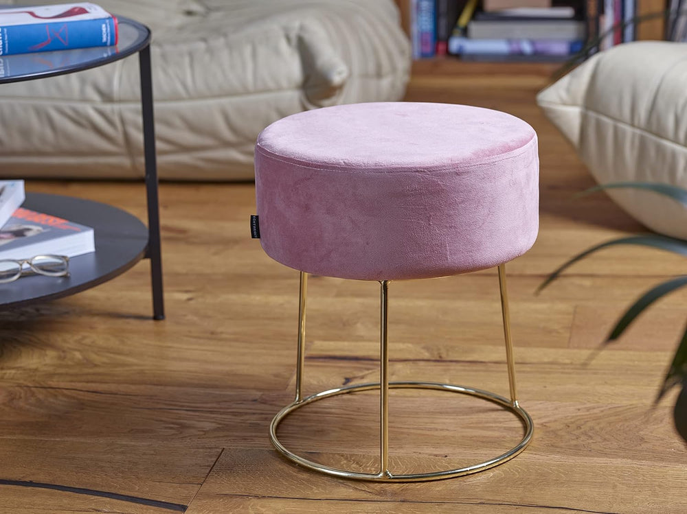 ECHTWERK runder Sitzhocker Marilyn, Polsterhocker aus Samtstoff, Schminkhocker mit Metallbeinen in G