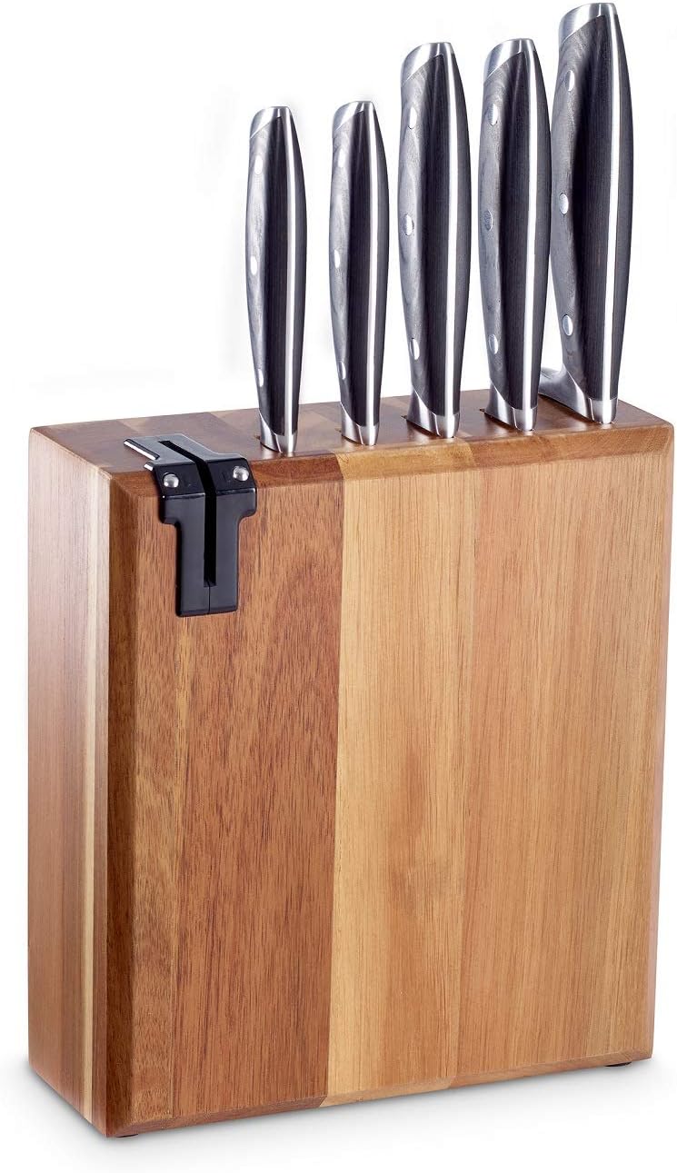 ECHTWERK Messerblock/ Küchenmesser-Set aus Akazienholz mit rutschhemmenden Gummifüssen, Inkl. Integr