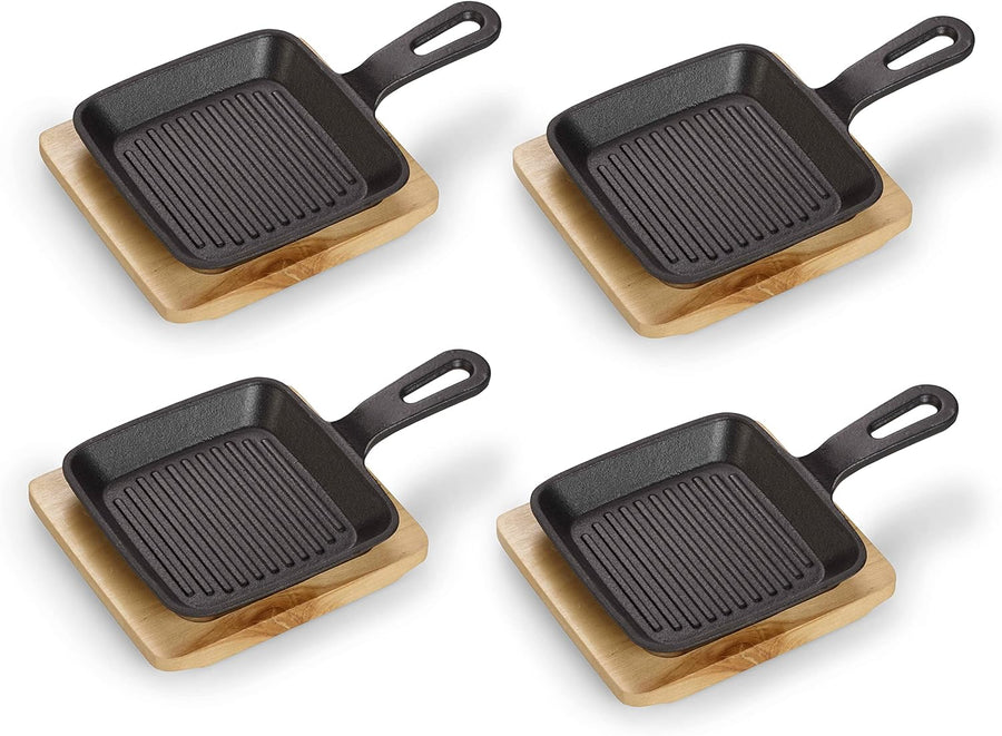ECHTWERK Servierpfanne 4er Set aus Gusseisen, Servierpfännchen, Quadratische Auflaufform mit Servier