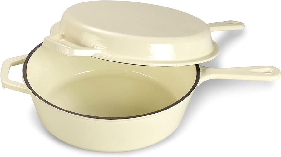 Echtwerk Schmortopf und Grillpfanne 2-in-1 Set, Gusseisen Bräter mit Deckel, Gusseisentopf mit Email