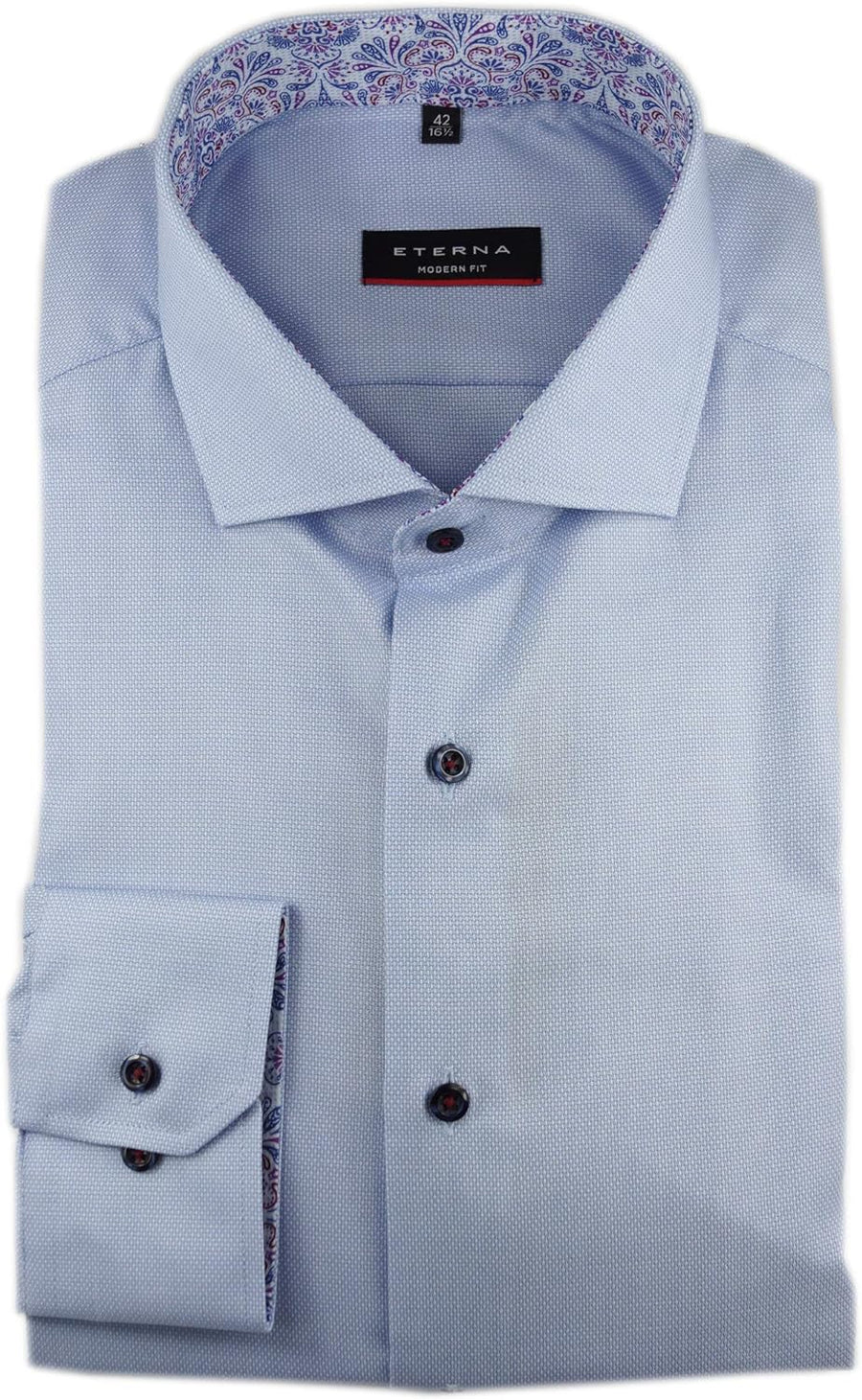eterna Herren Langarm Business Hemd Modern Fit Struktur Unifarben Shark Patch 3270.X15V (Hellblau, W