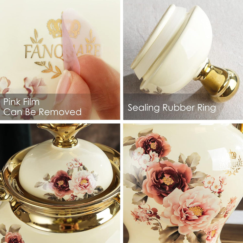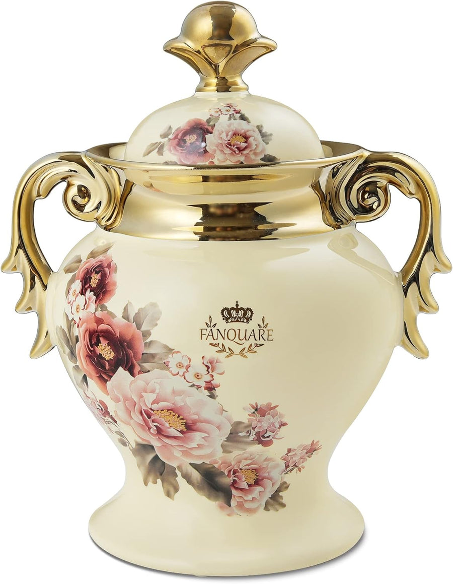 fanquare Porzellan Zuckerdose mit Griffen, Vintage Rosa Geblümt Muster Vase, Küche Lagerung Kanister