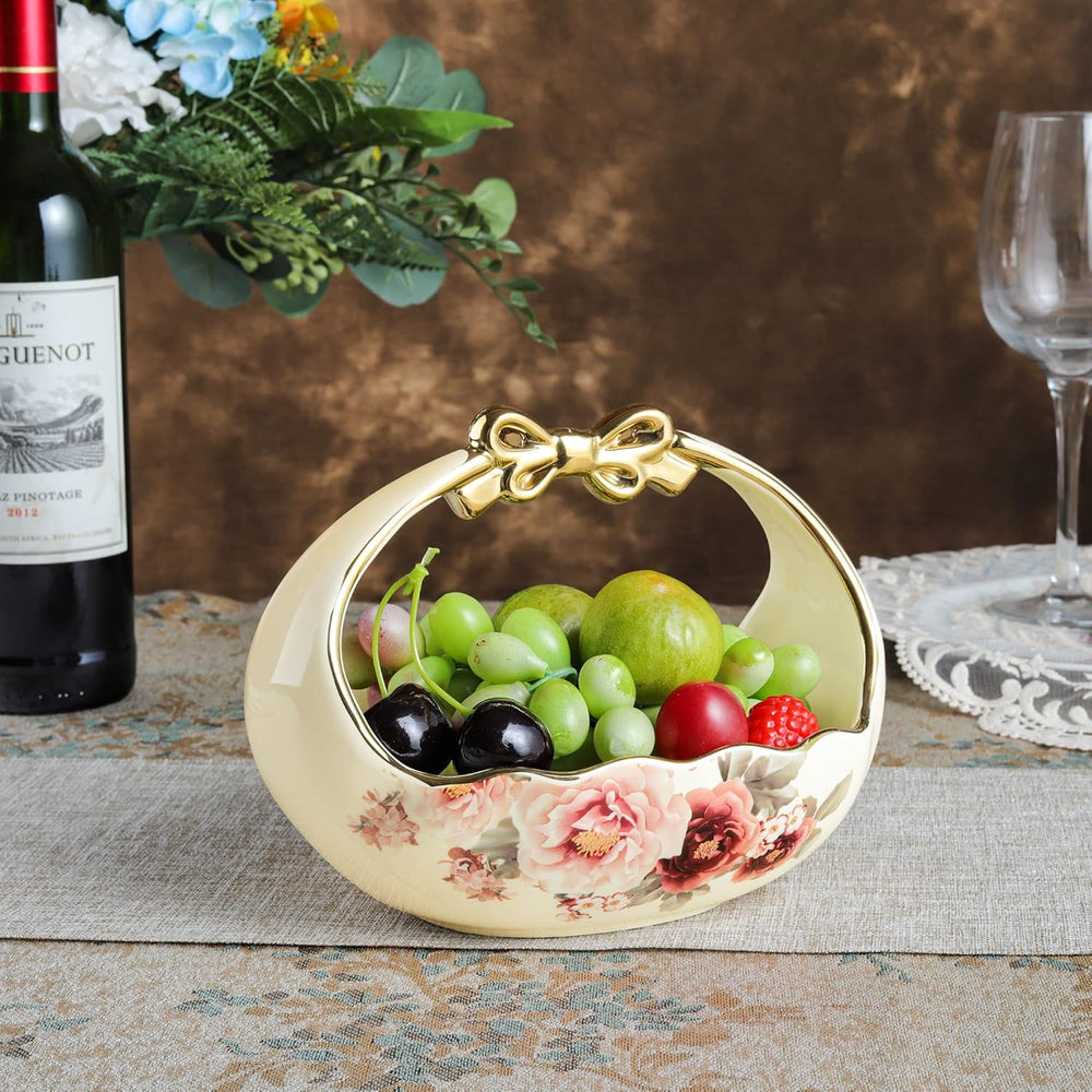 fanquare Vintage Obstkorb aus Porzellan, Gewellten Rändern Snackschale, Blumen Keramik Müslischale m