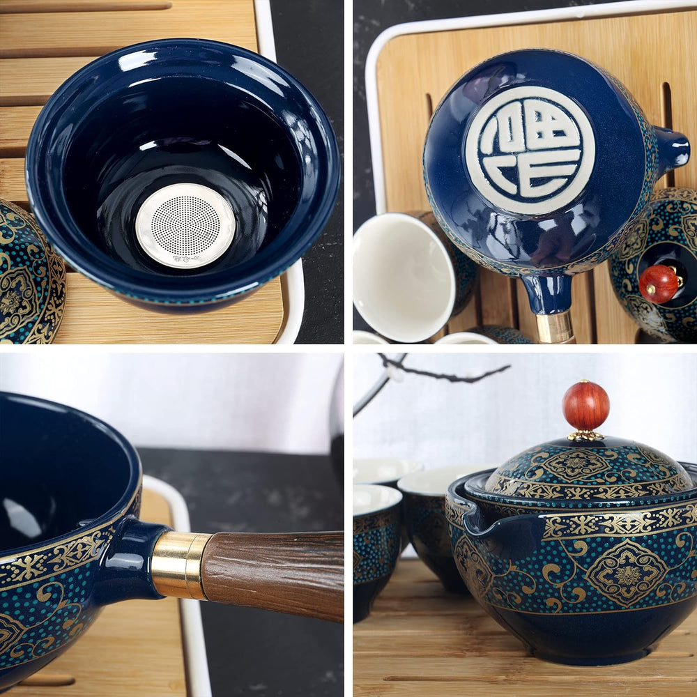 fanquare Tragbare Reise Kung Fu Teeservice, Handgemachte Kungfu Tee Set, Porzellan Teekanne, Teetass
