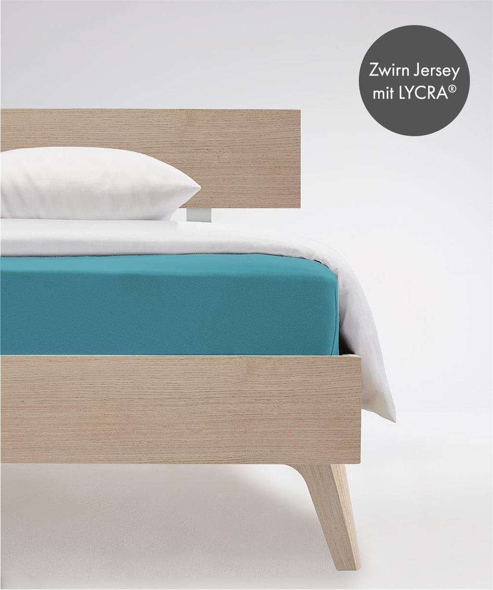 fleuresse Comfort Spannbettlaken, 96% Baumwolle, 4% Elasthan, Aqua, 200 x 200 200 x 200 Aqua, 200 x