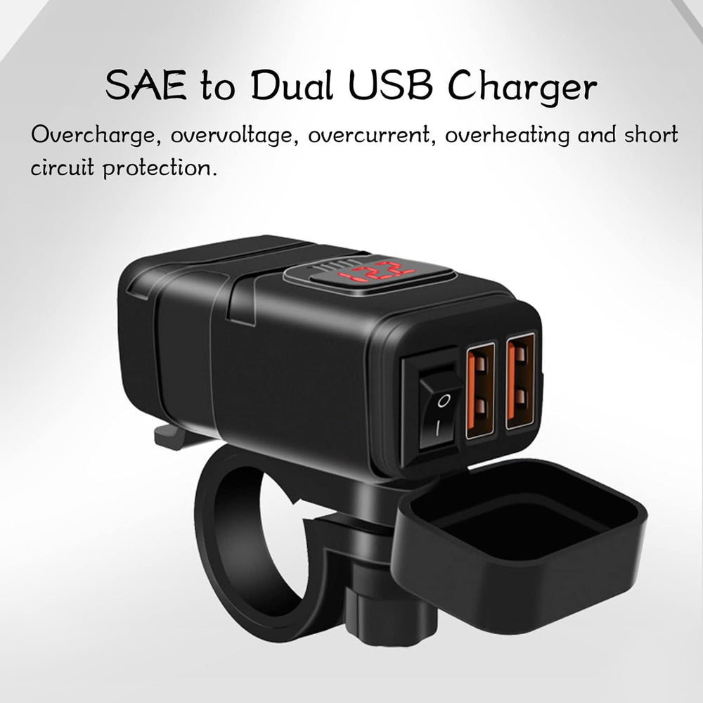 Fydun Motorrad Dual USB Ladegerät SAE zu USB Adapter mit Wasserdichtem Abdeckungsschalter Schnelllad