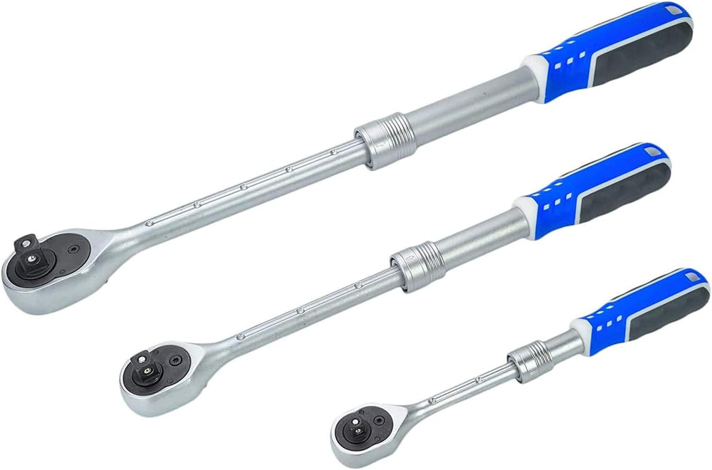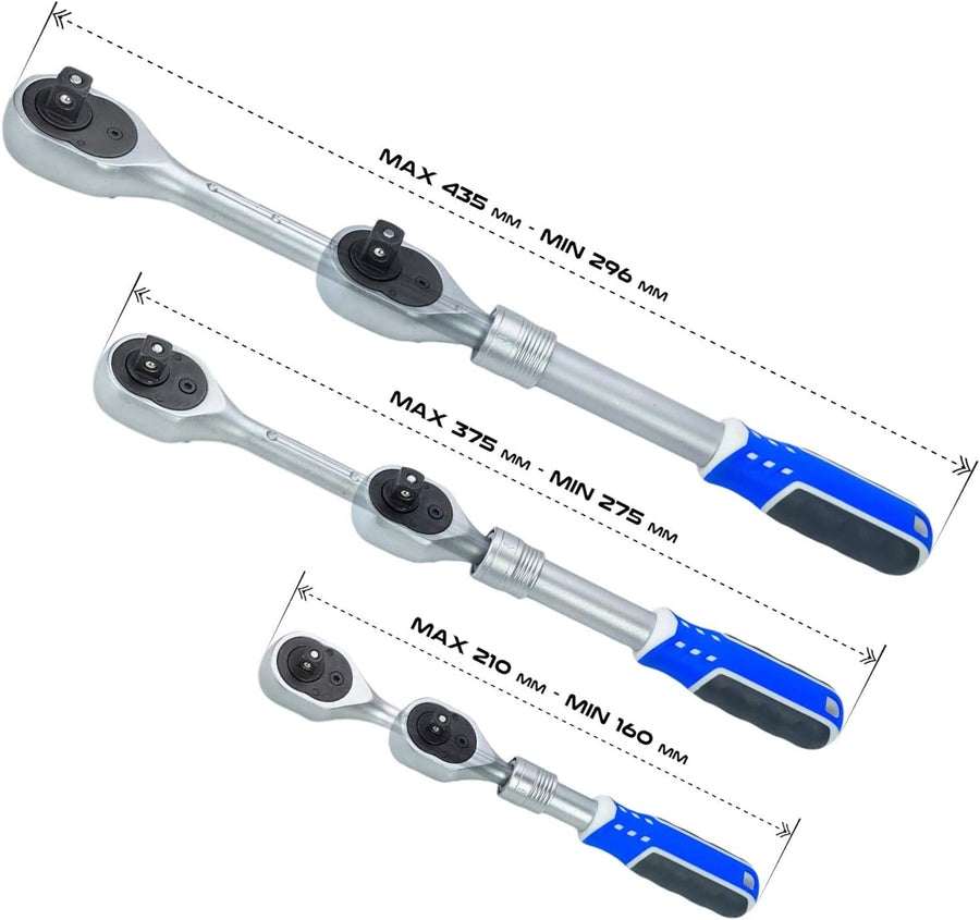 HASKYY | 1/2" + 3/8" + 1/4" | Teleskop-Ratsche-Knarre-Set I Umschaltknarre ausziehbar | feinverzahnt