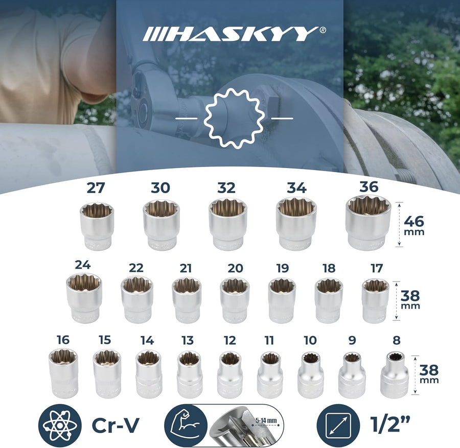 HASKYY® Vielzahn Nusskasten Nüsse Steckschlüssel 8-36mm Satz