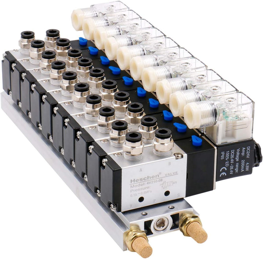 Heschen Integriertes Magnetventil mit 8 Fächern, 4V210-08, DC24V, PT1/4'', 5-Wege 2 Positionen, mit