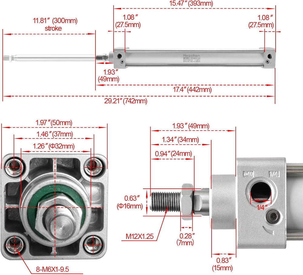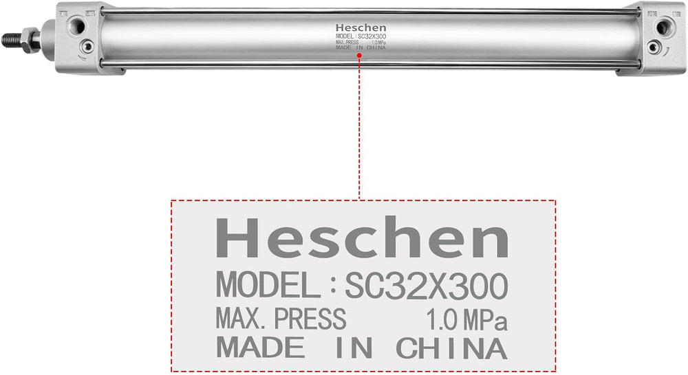 Heschen Pneumatischer Standard-Luftdruckzylinder, SC 32-300, PT1/8 Anschluss, 32mm Bohrung, 300mm Hu