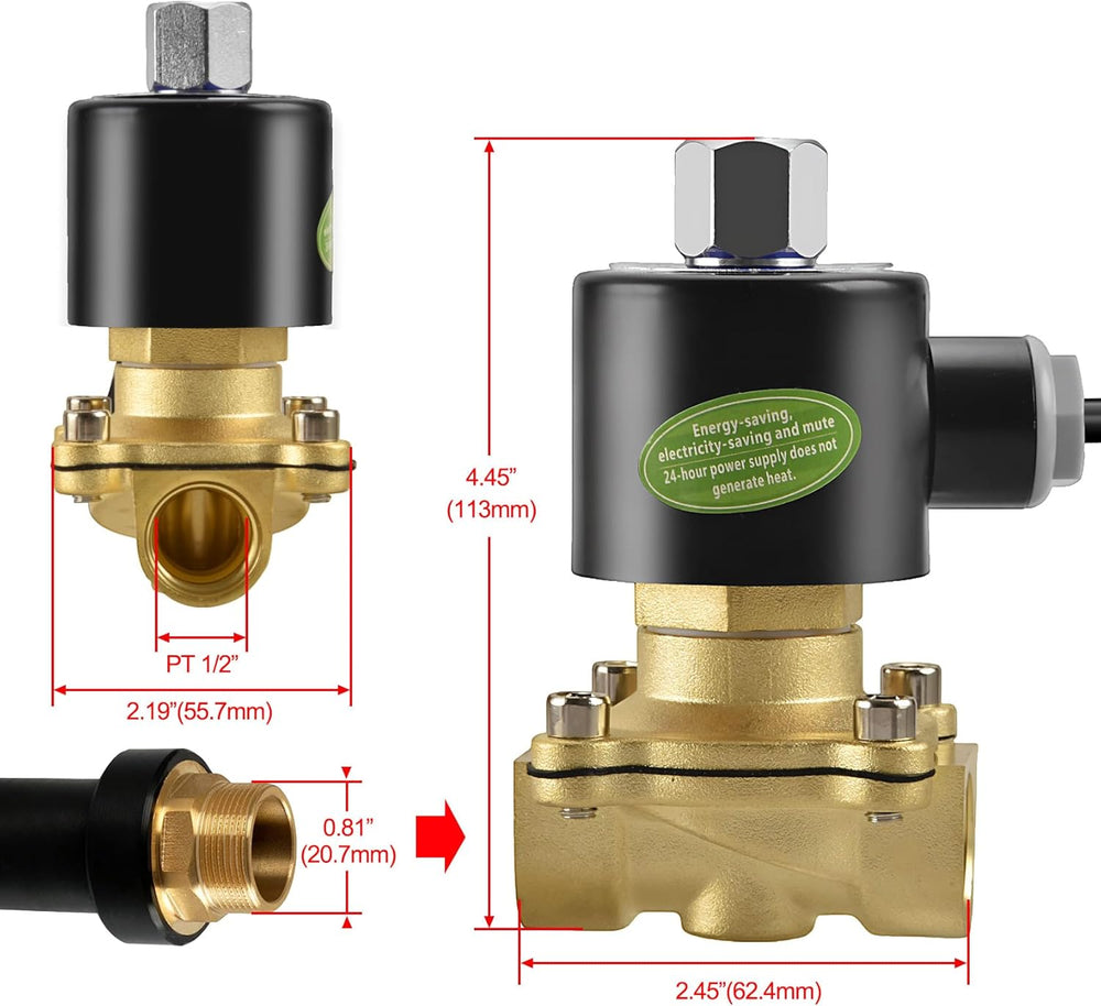 Heschen Messing Elektrisches Magnetventil, 2W-160-15KJ, PT1/2'', DC12V, Direct Action Wasser Air, No