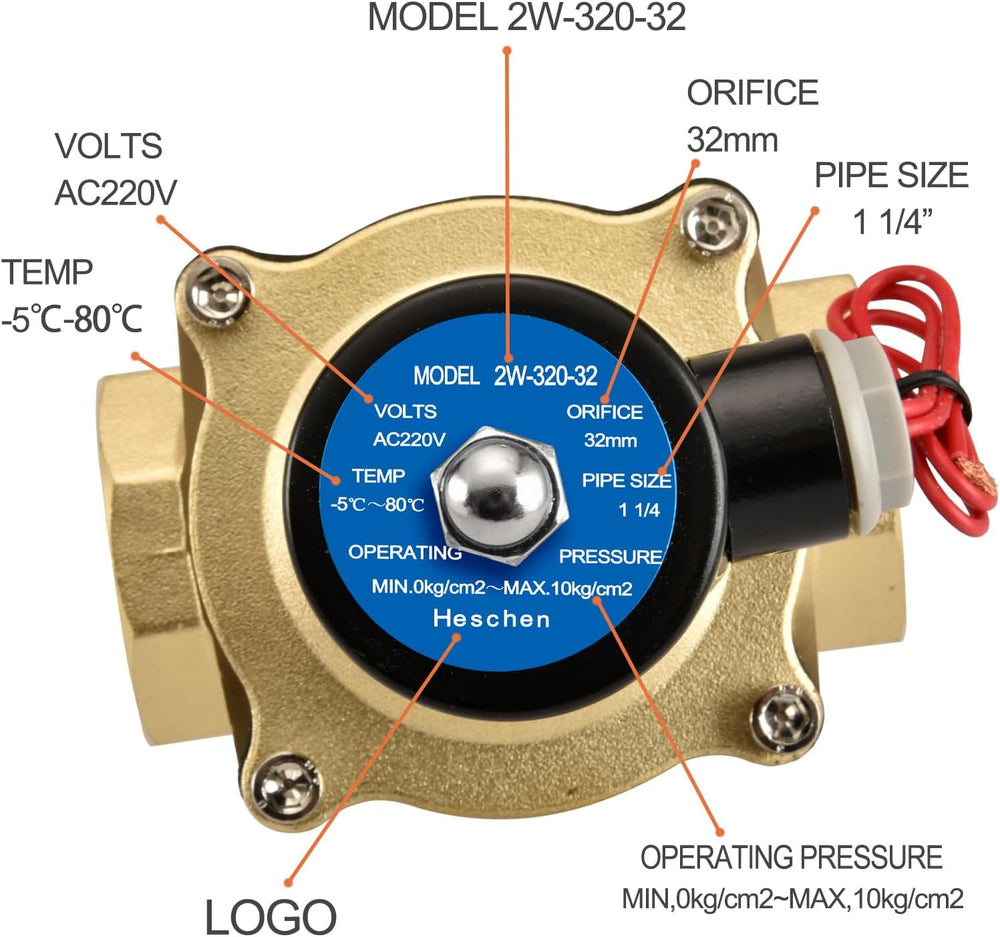 Heschen Messing Elektrisches Magnetventil, 2W-320-32, PT 1-1/4'', AC220V, Direktwirkung Wasser Luft,