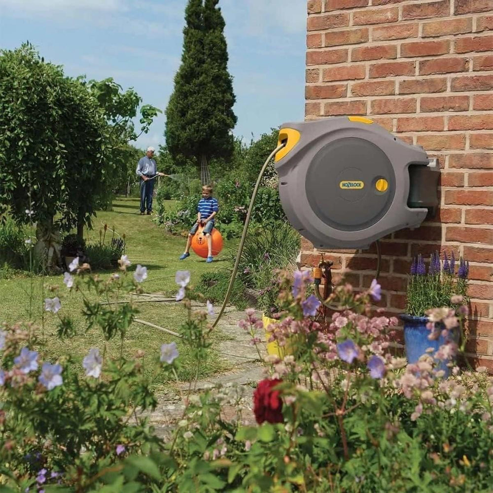 Hozelock 2595H Wandmontage 40m Schlauch Automatik Rücklaufschlauch Sammelrolle Set