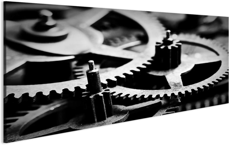 islandburner, Bild auf Leinwand Grunge-Getriebe, Zahnräder schwarz-weisser Hintergrund. Konzept von