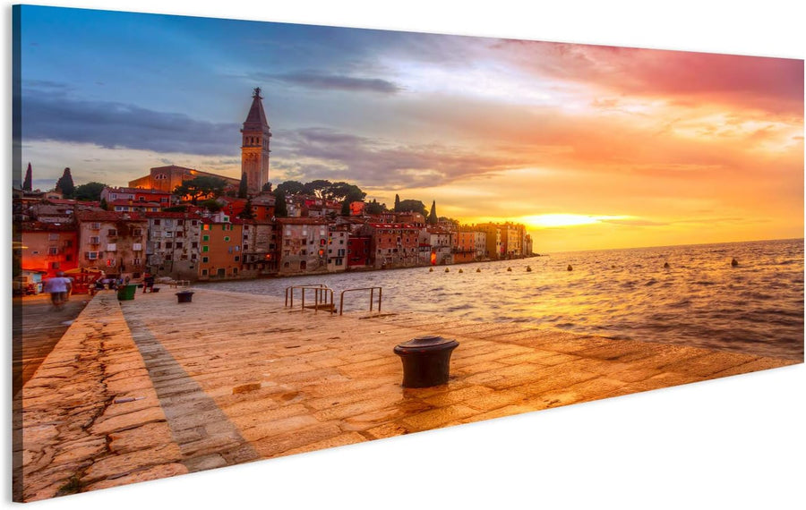 Bild Bilder auf Leinwand Schöner Sonnenuntergang in Rovinj an der Adriaküste von Kroatien Wandbild L