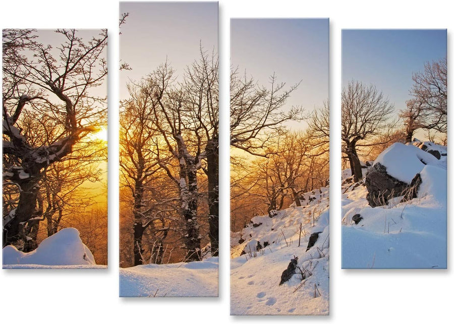 Bild Bilder auf Leinwand Winter im Wald bei Sonnenuntergang Wandbild Poster Leinwandbild RCE 130x80c