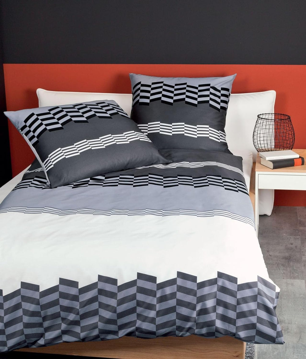 Janine Bettwäsche Set J.D. 87011 Farbe 08 Titan 100% Baumwolle in Mako Satin mit Modischem Streifen