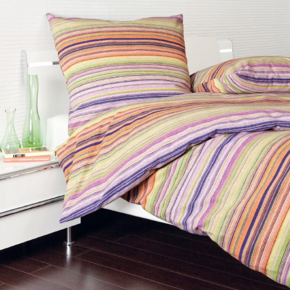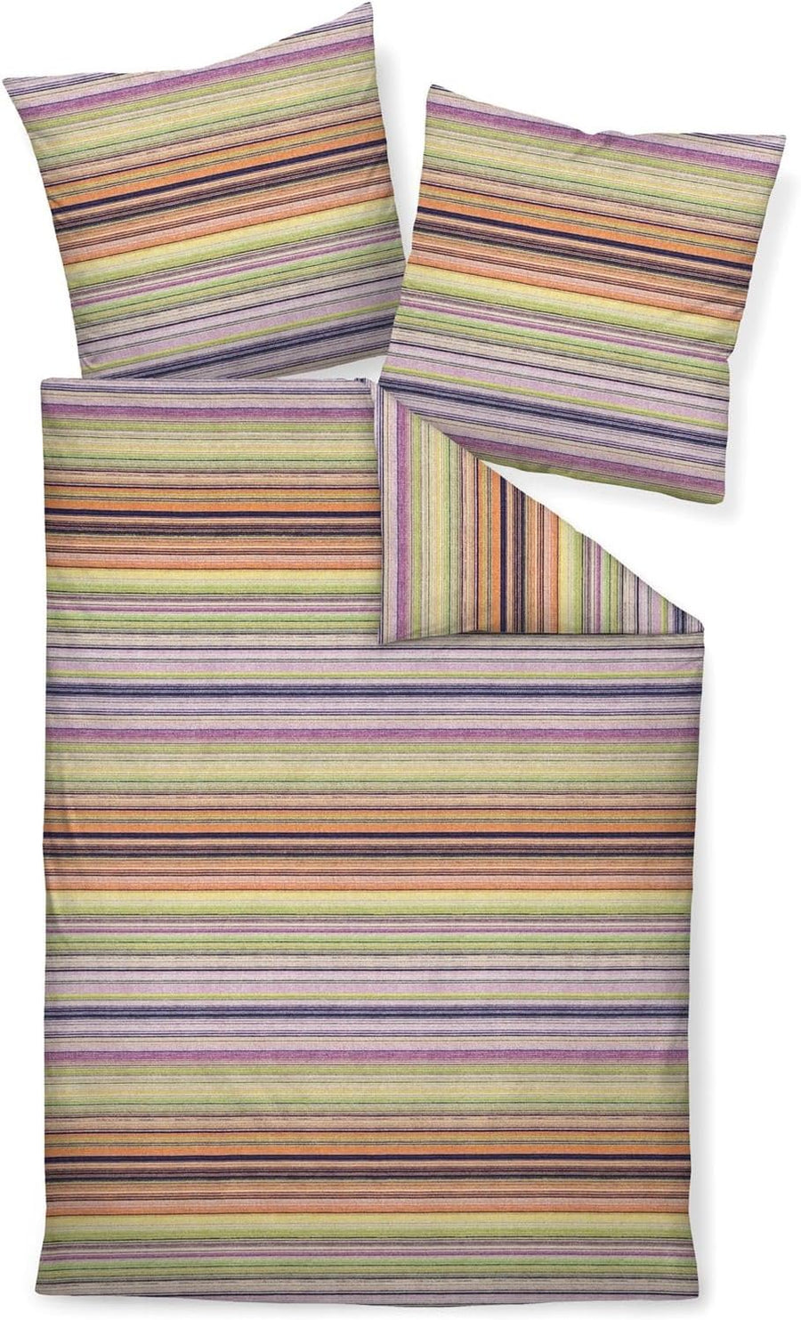 Janine Bettwäsche Set Davos 65011-04 Orange Grün Beere 100% Baumwolle Feinbiber Modernes Mehrfarbige