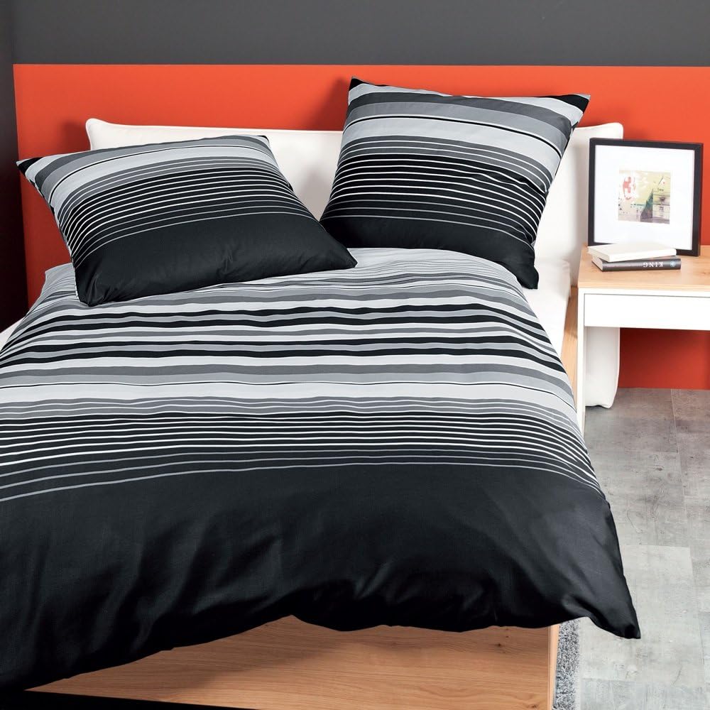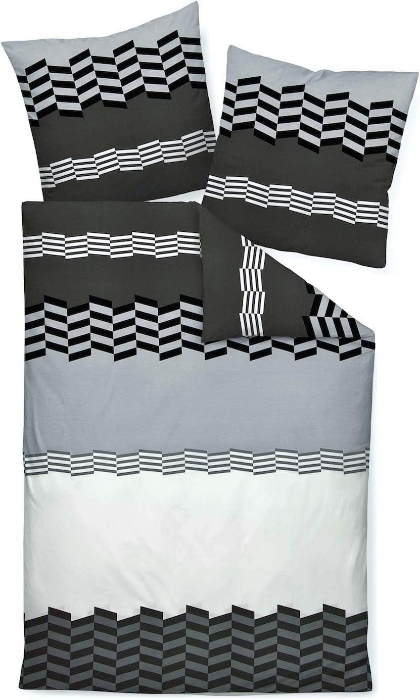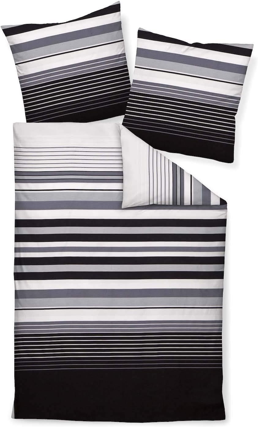 Janine Bettwäsche Set J.D. 87012 Farbe 08 Graphit Grau in Mako Satin 100% Baumwolle Streifen Design,
