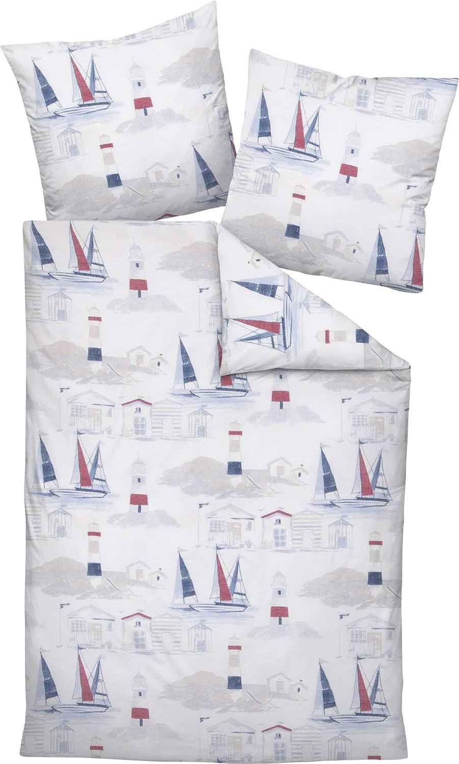 Janine Bettwäsche Soft-Seersucker rot-blau Grösse 135x200 cm (80x80 cm) 135x200 cm + 80x80 cm, 135x2