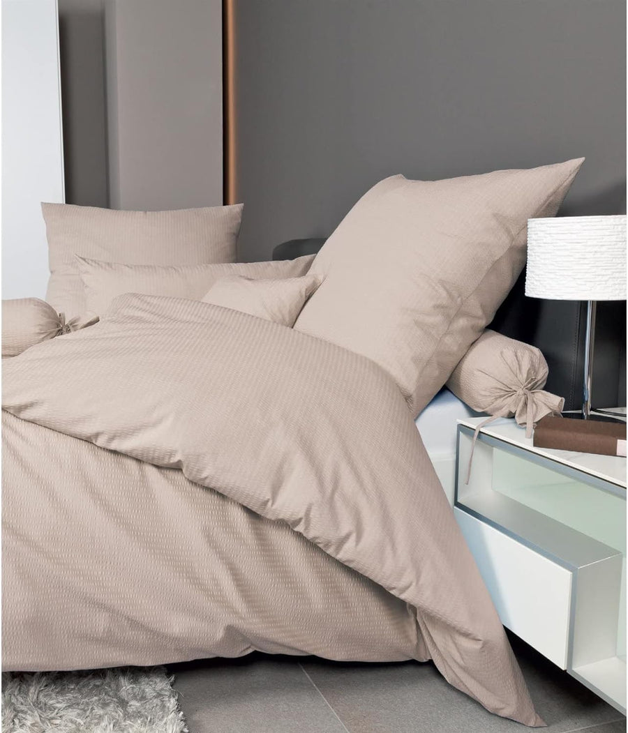 Janine Bettwäsche Seersucker Uni Piano 155x220 cm inklusive Kissenbezug 80x80 cm Taupe 155x220 cm +