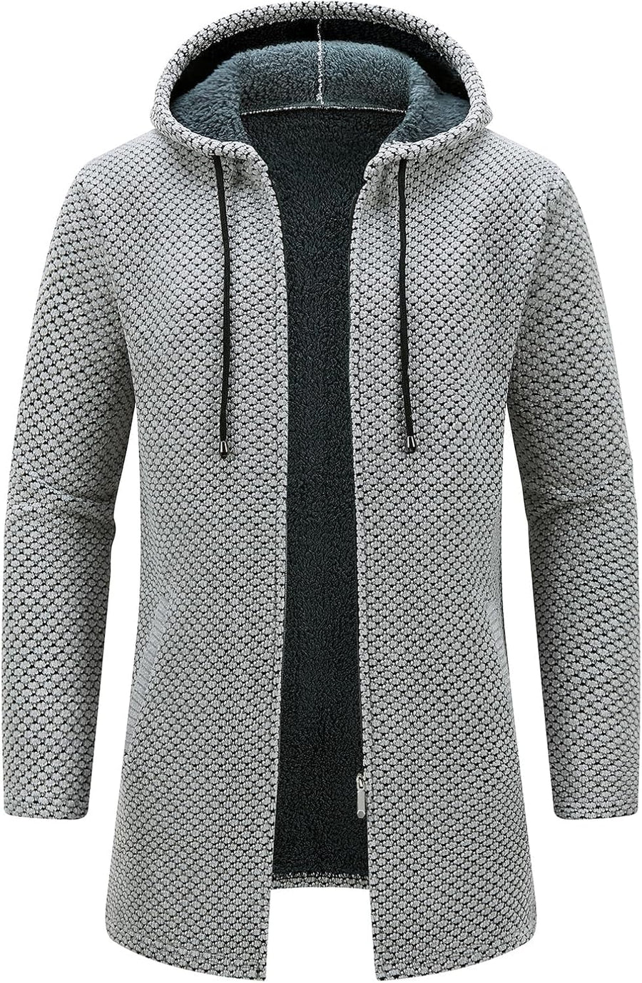 KUDORO Strickjacke Herren Cardigan Lang Trachtenjacke Kapuze mit Kapuze Gestrickt Pullover Hoodie Wi