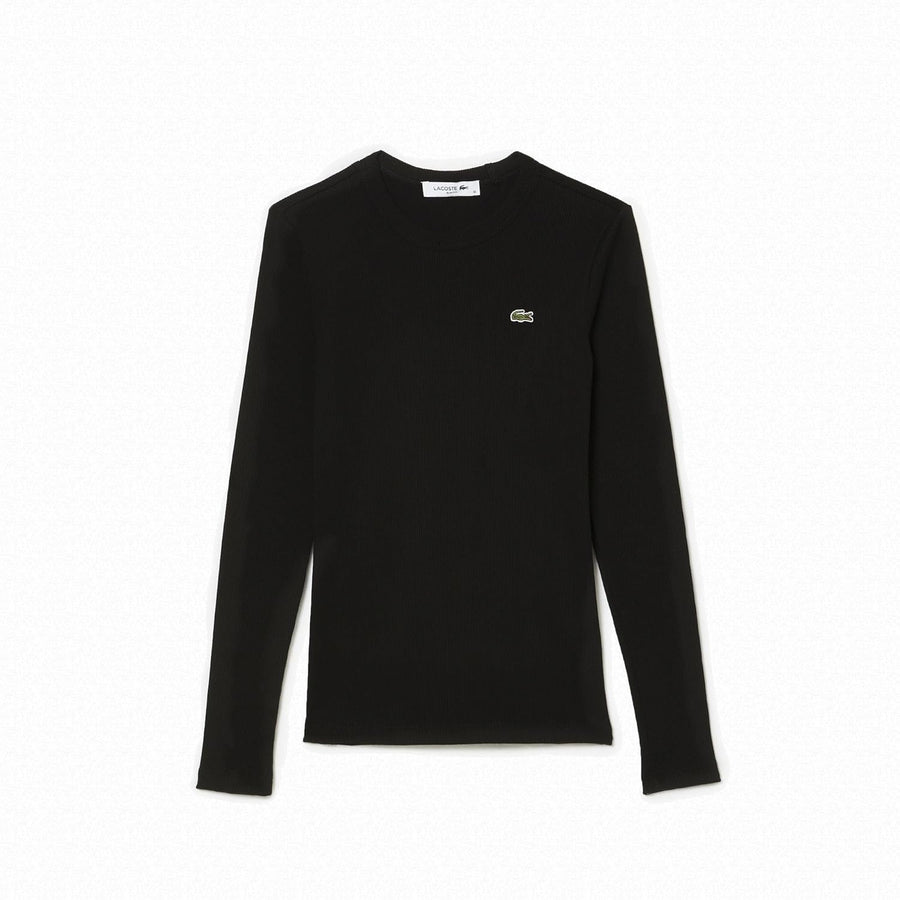 Lacoste Damen T-Shirt Langarm TF1692, Frauen Basic Tshirt,Tee,Regular Fit 40 Black (031), 40 Black (