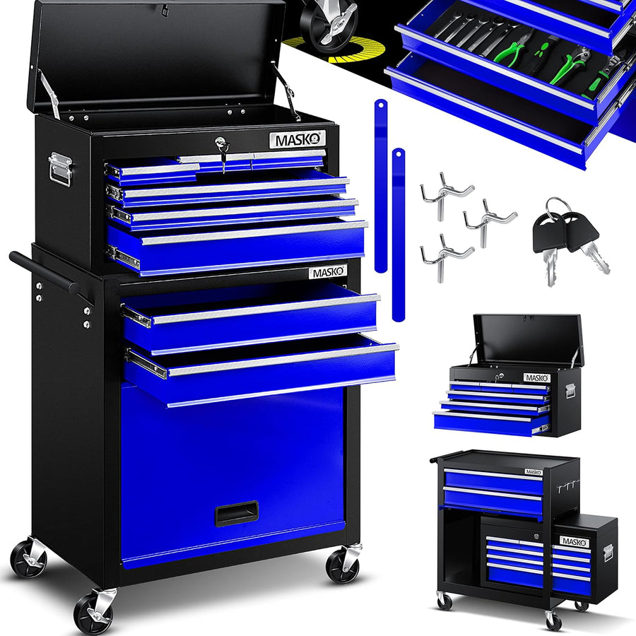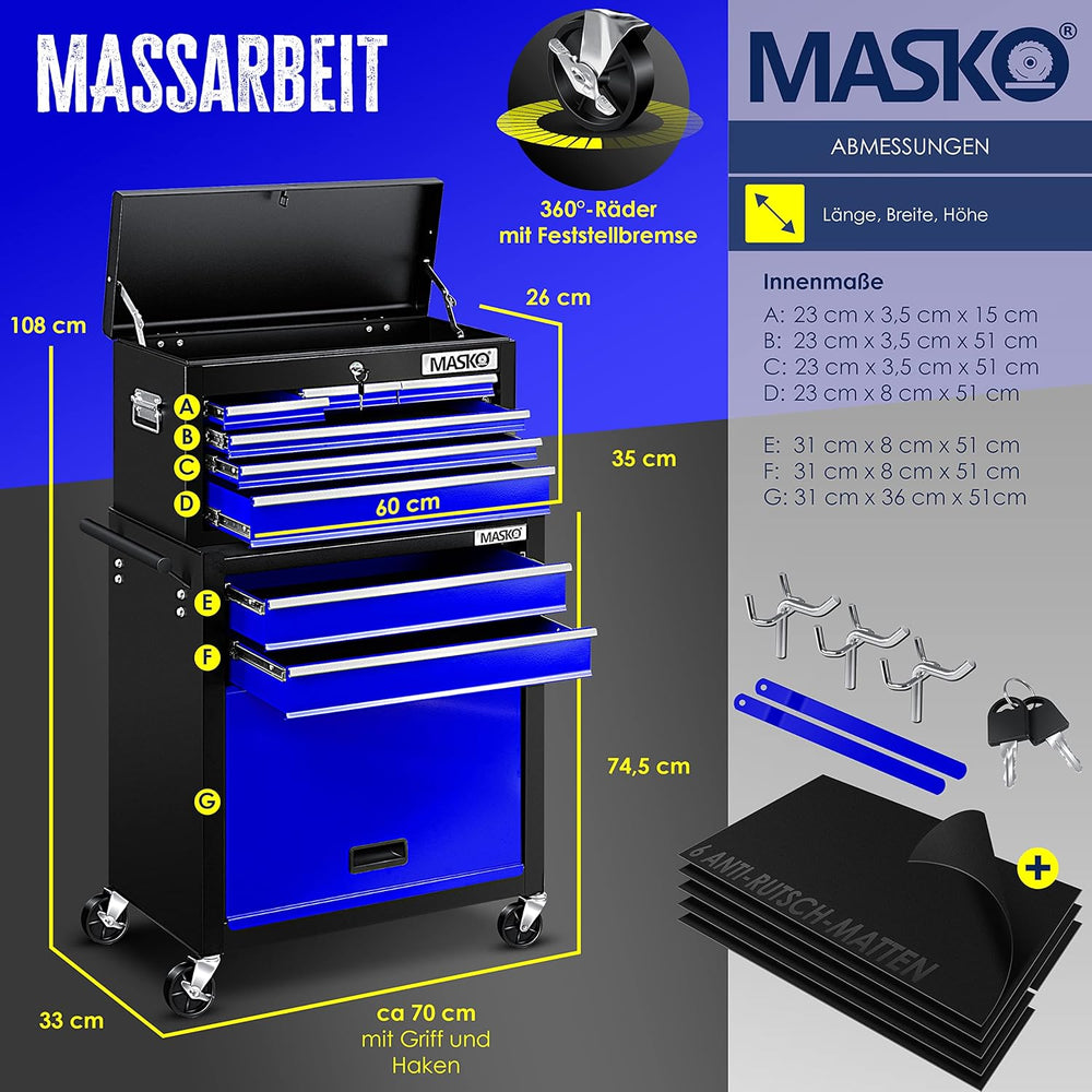 MASKO® Werkstattwagen inkl. Koffer - 9 Fächer Abschliessbar | Massives Metall | Mobiler Werkzeug-Wag