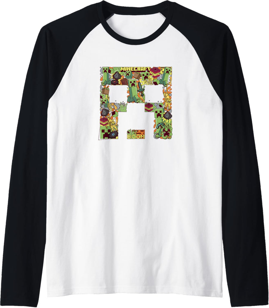 Minecraft Creeper Collage mit grossem Gesicht Raglan