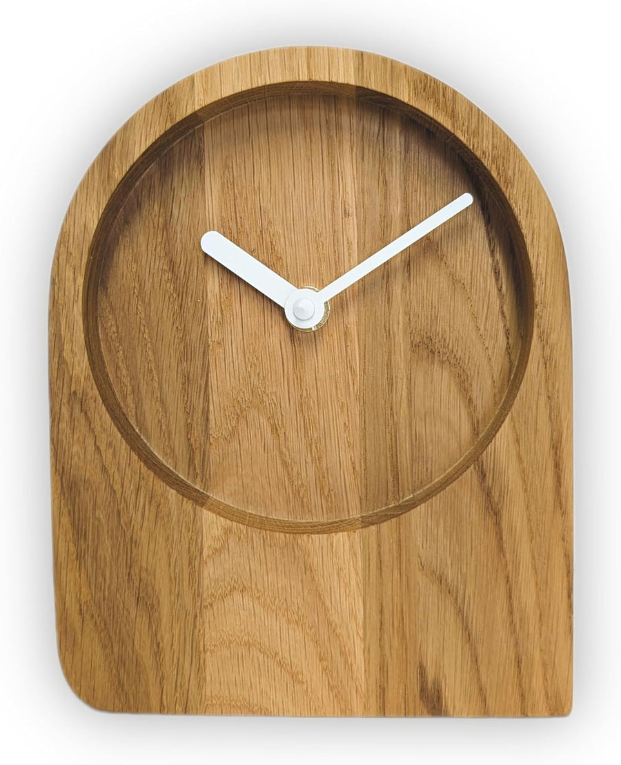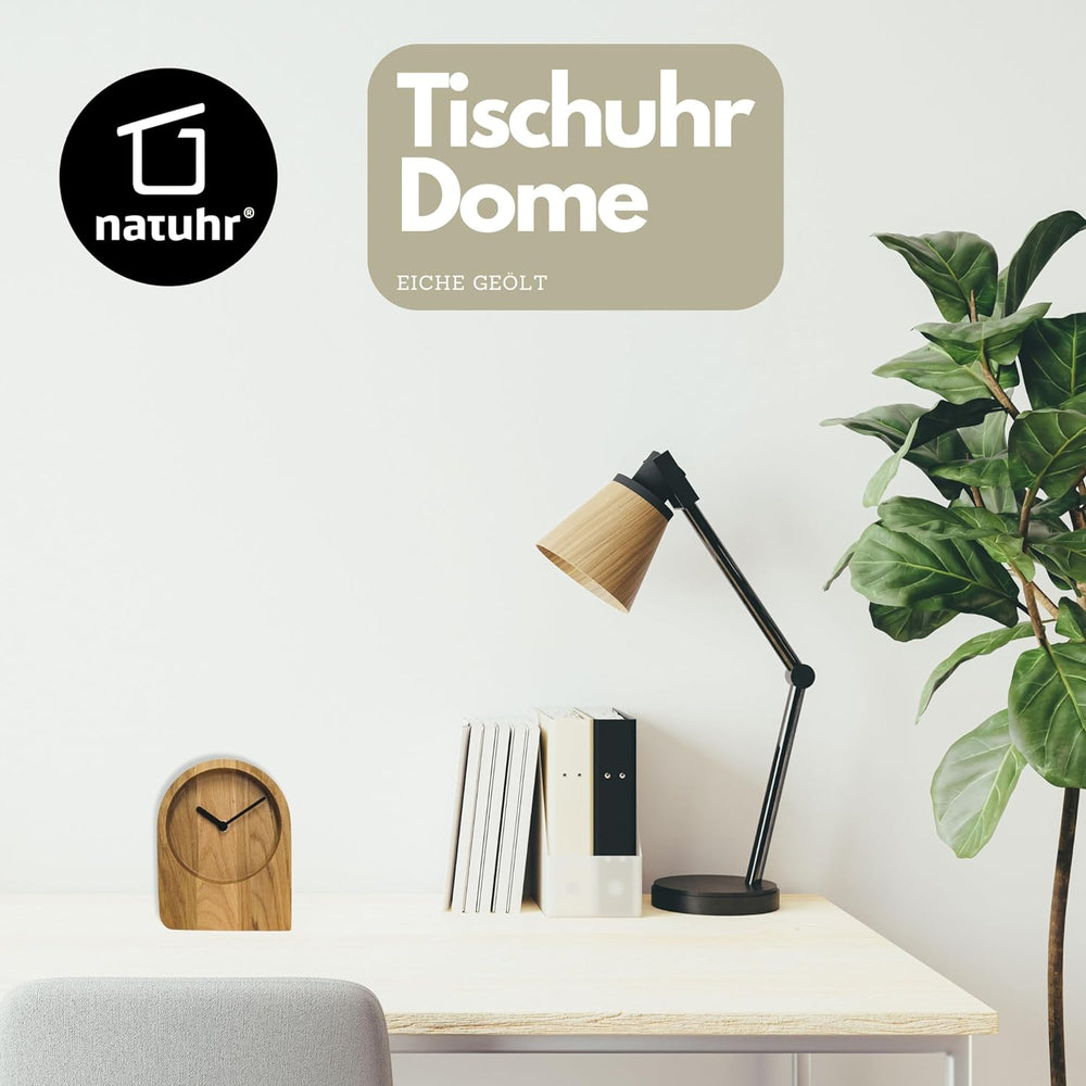 Natuhr Tischuhr Eiche Holzuhr - Dome - puristisch modern Massivholz (Eiche geölt, Weisse Zeiger - Fu