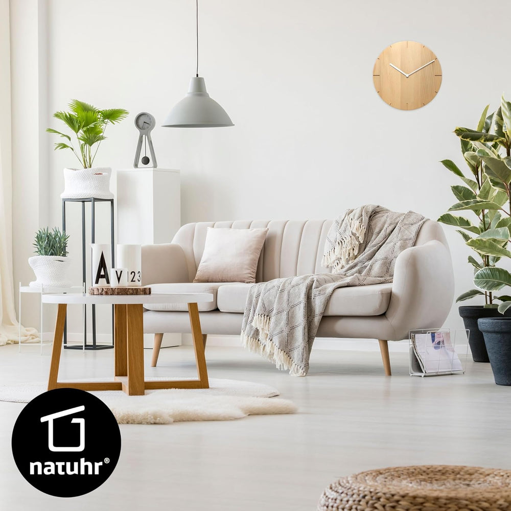 Natuhr Wanduhr Buche geölt Holz Solide Massivholz, geräuscharmes U.T.S. Uhrwerk, puristisch, modern,