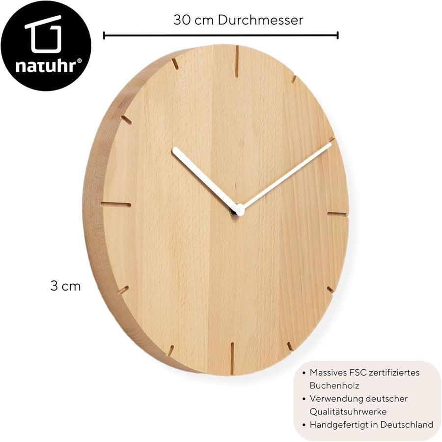 Natuhr Wanduhr Buche geölt Holzuhr Solide Massivholz, präzises Funk Uhrwerk, puristisch, modern, ska