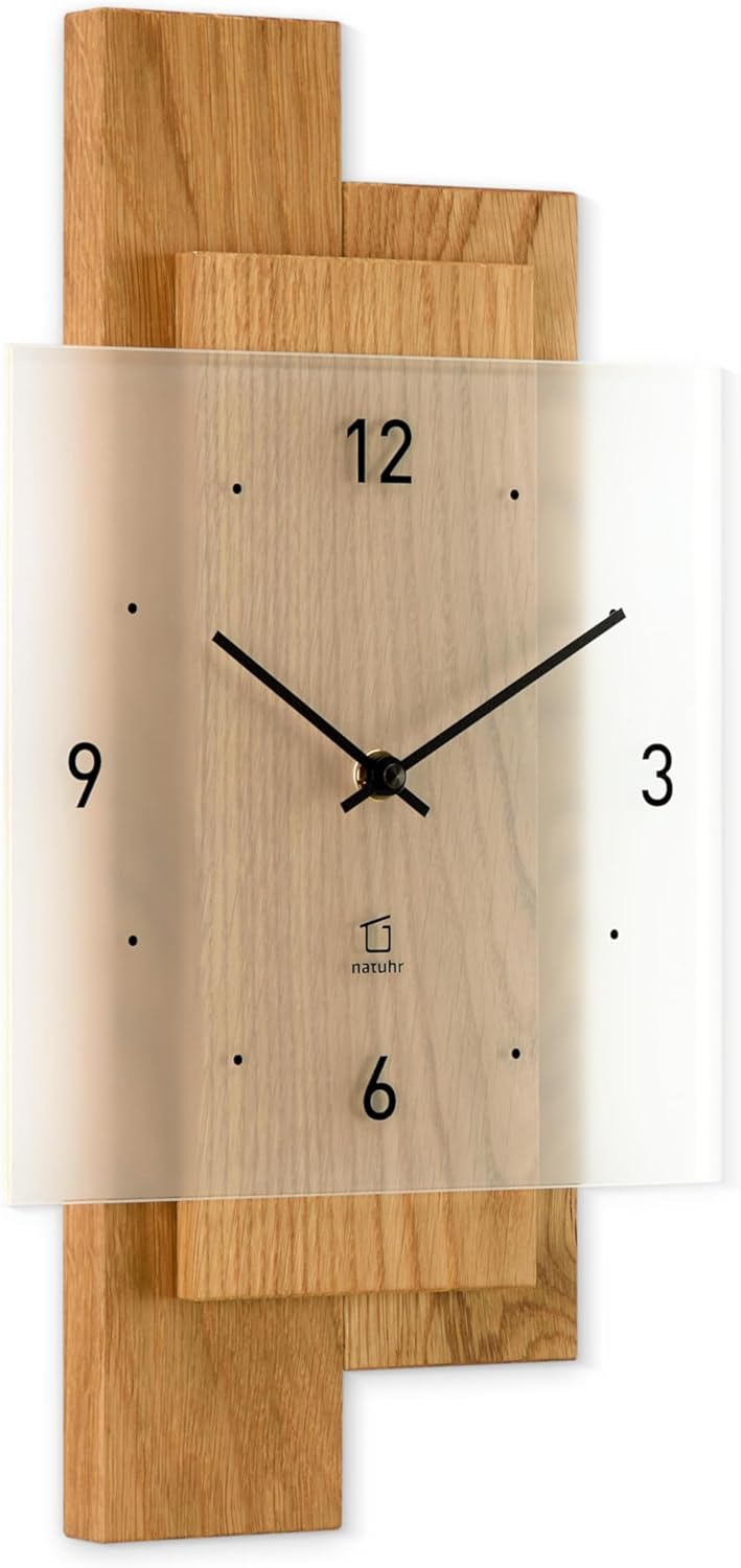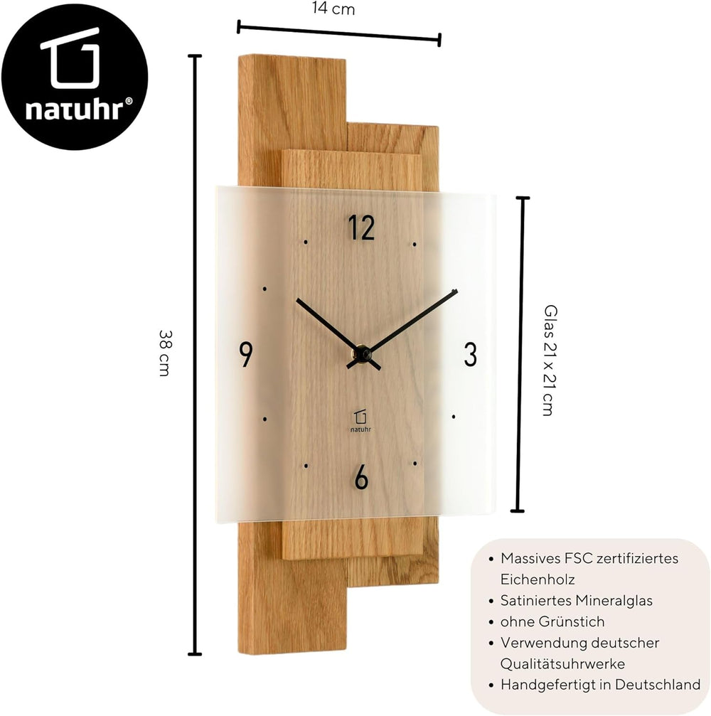 Natuhr Wanduhr Holz Eichwald Modern geräuscharm Eiche Mineralglas U.T.S. Uhrwerk (Eiche geölt, Quarz