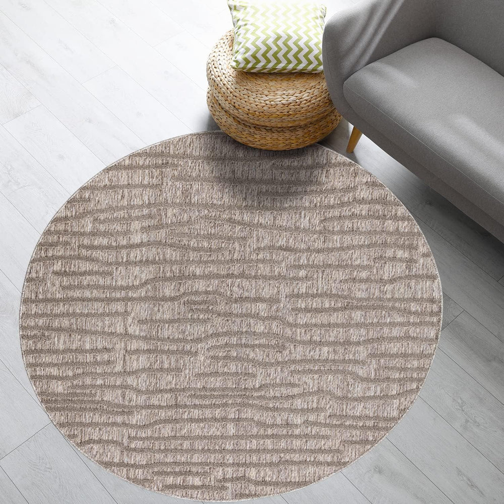 payé Teppich Outdoor Indoor - Rund 120cm - Braun Meliert - Boho Design Modern Vintage Teppiche Wohnz
